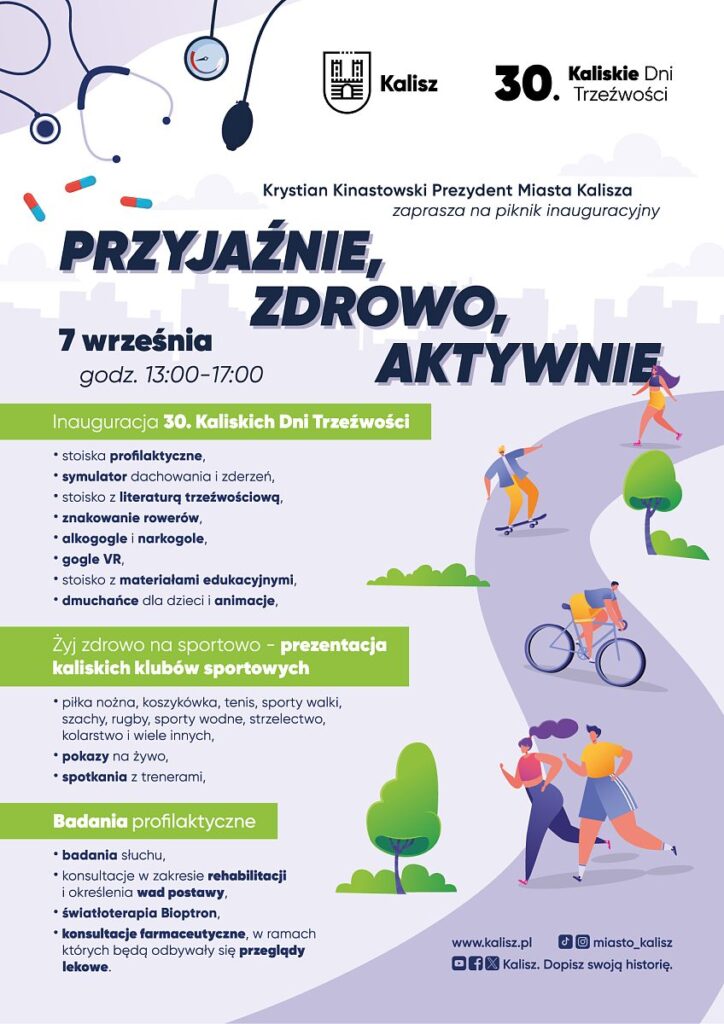 7 września zapraszamy do Parku Przyjaźni na piknik „Żyj zdrowo na sportowo” na którym będzie wiele atrakcji, w tym prezentacje klubów sportowych z Kalisza. Zapraszamy naszych szachistów w klubowych koszulkach!