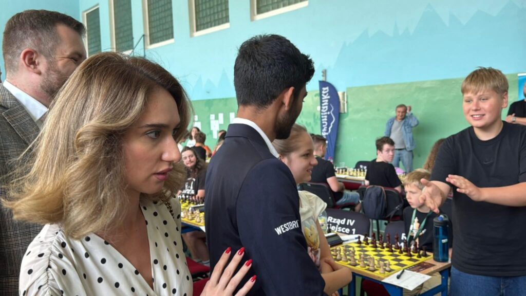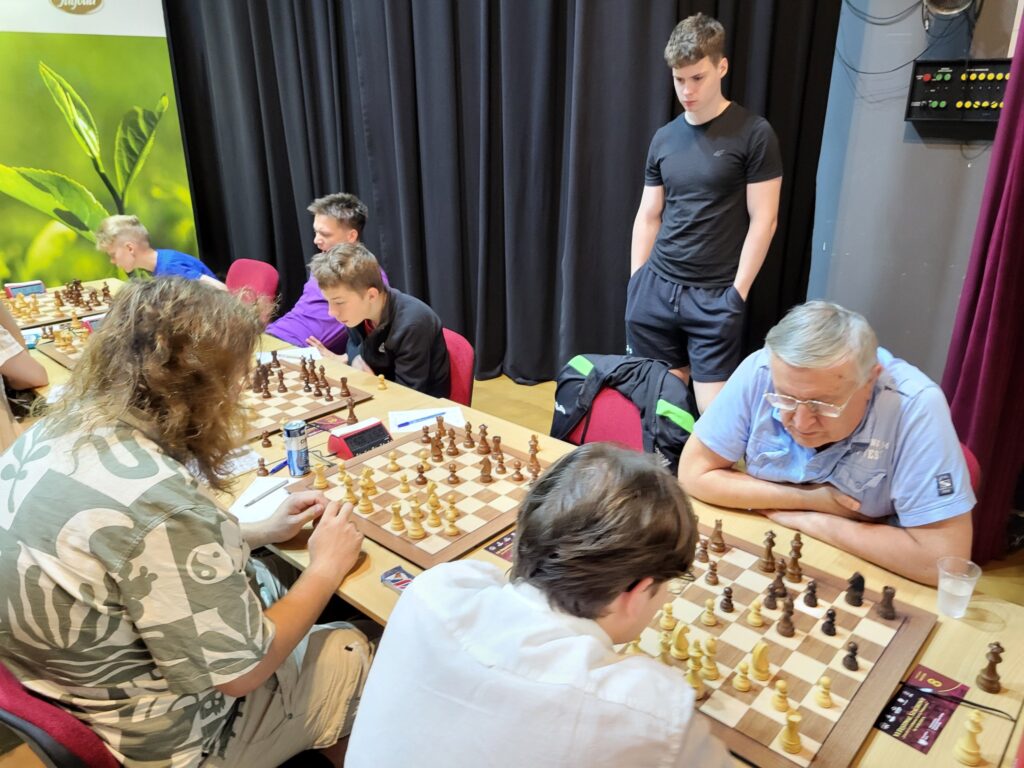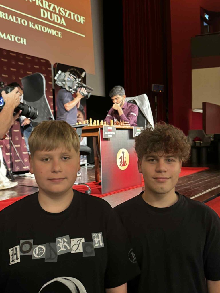 W pierwszym tygodniu sierpnia odbył się Festiwal Szachowy w Ustroniu. Gościem specjalnym zawodów był Gukesh, aktualny mistrz świata w szachach pochodzący z Indii. Organizatorzy zapewnili uczestnikom turnieju możliwość spotkania z mistrzem (zrobienie wspólnej fotografii czy zdobycia autografu). Na jednym ze zdjęć Filip Krzeszewski kapitan jednej z naszej juniorskich drużyn z entuzjazmem wita mistrza ![]()